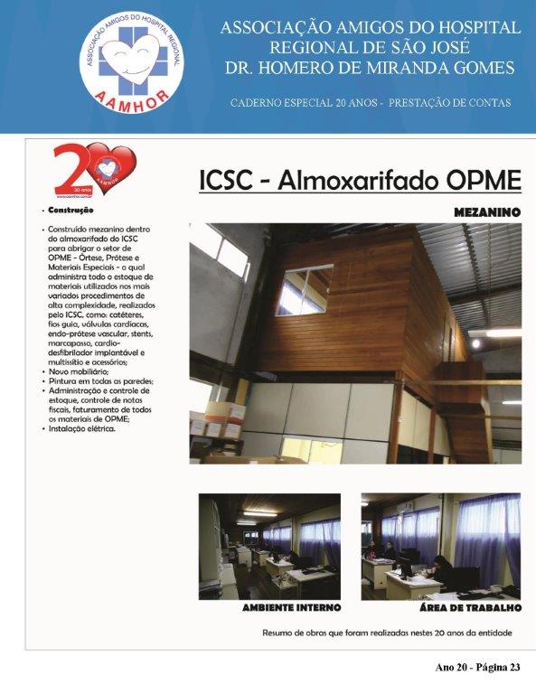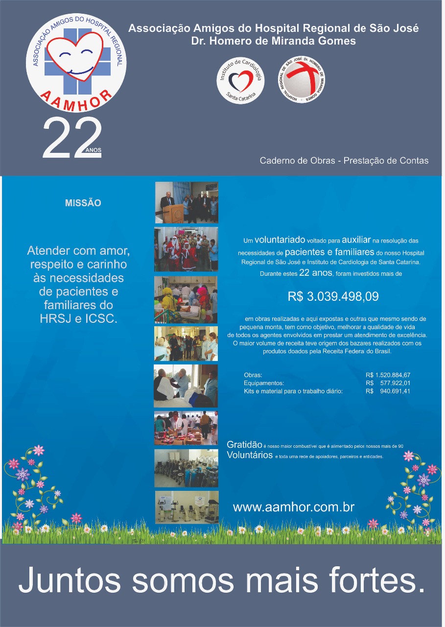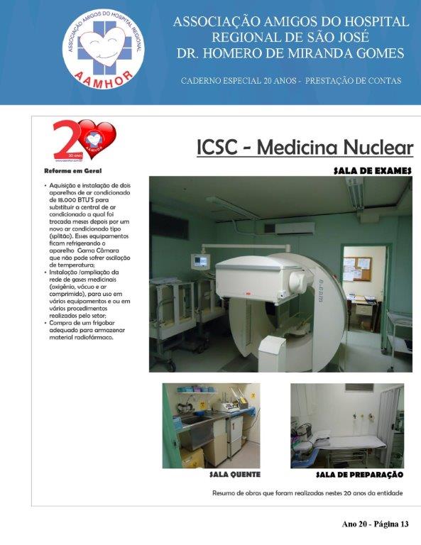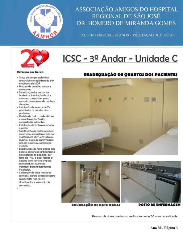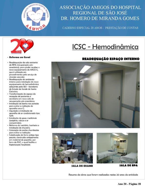 Quando comemorou 20 anos, em Julho/2016, a entidade fez um breve balanço de realizações em obras que visam a qualidade do atendimento de pacientes e familiares do ICSC e HRSJ. Mas as obras e investimentos seguem sem interrupção. No entanto, os volumes investidos estão atualizados até Dez/18.